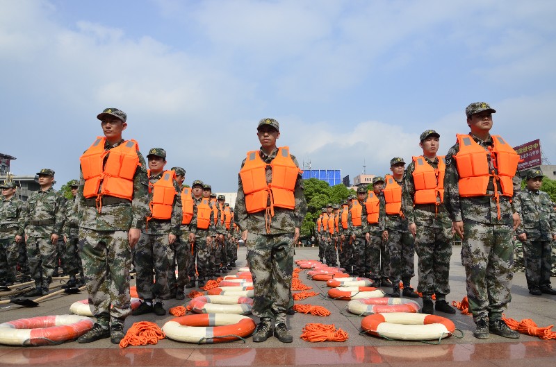 萍安鋼鐵預備役戰士整裝待發,隨時準備奔赴抗洪一線。