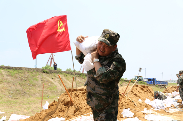2016年7月,九江鋼鐵民兵應(yīng)急分隊(duì)和馳援湖口部隊(duì)并肩抗洪